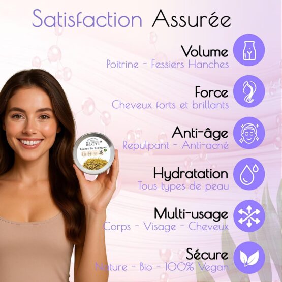 Le beurre de fenugrec est plus riche et nourrissant grâce à sa base lipidique (souvent karité). Il agit surtout sur la nutrition et la protection cutanée. L’huile de fenugrec est plus légère et adaptée aux massages ciblés pour la tonicité de zones spécifiques comme la poitrine ou les fessiers.