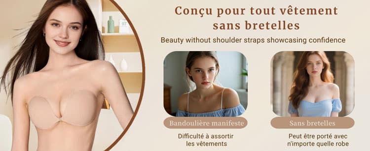 | Utilisation | Tenues sans bretelles • Dos nu • Robes ajustées |